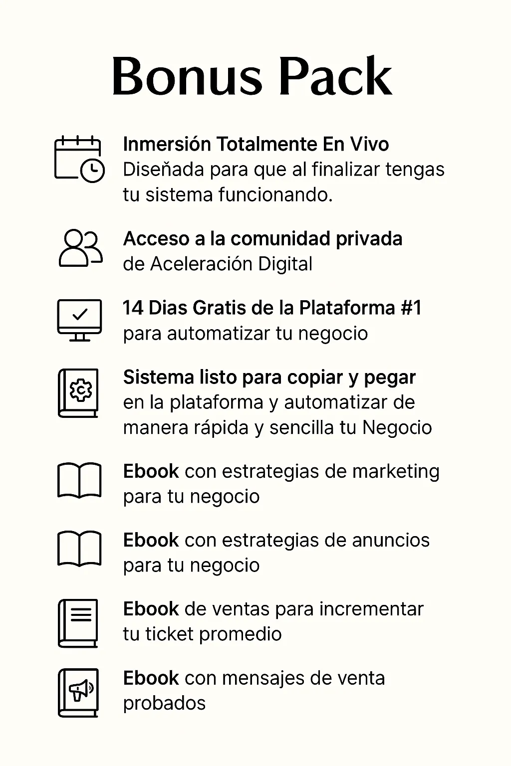 Inmersión En Vivo donde te entrego mi estrategia para que llenes la agenda de tu negocio en 30 días.